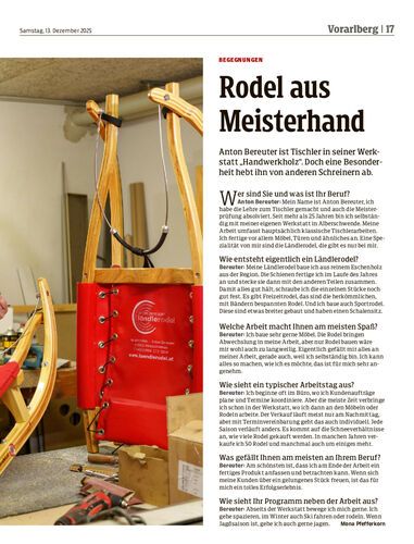 Anton Bereuter ist Tischler in seiner Werkstatt „Handwerkholz“. Doch eine Besonderheit hebt ihn von anderen Schreinern ab.