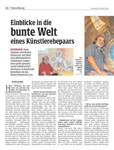 Interview. Ruth Gabriela und Walter Schnetzer, seit dem Jahr 2000 glücklich verheiratet, haben eine große gemeinsame Leidenschaft: die Kunst. In Rankweil betreiben sie das