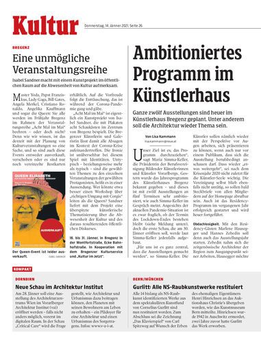 Ganze zwölf Ausstellungen sind heuer im Künstlerhaus Bregenz geplant. Unter anderem soll die Architektur wieder Thema sein.