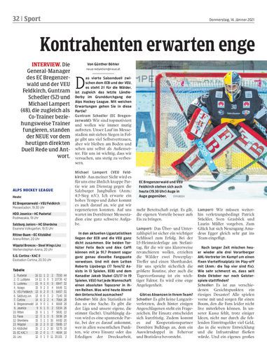 Interview. Die General-Manager des EC Bregenzerwald und der VEU Feldkirch, Guntram Schedler (52) und Michael Lampert (48), die zugleich als Co-Trainer beziehungsweise Trainer fungieren, standen der NEUE vor dem heutigen direkten Duell Rede und Antwort.
