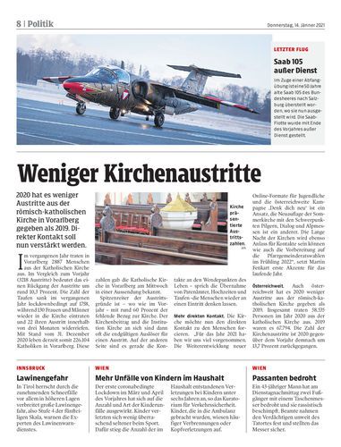 2020 hat es weniger Austritte aus der römisch-katholischen Kirche in Vorarlberg gegeben als 2019. Direkter Kontakt soll nun verstärkt werden.