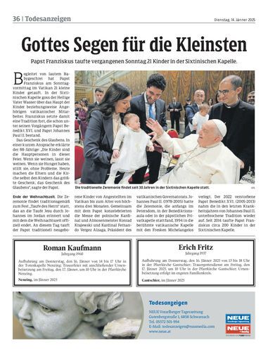 Papst Franziskus taufte vergangenen Sonntag 21 Kinder in der Sixtinischen Kapelle.