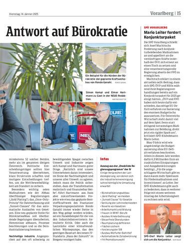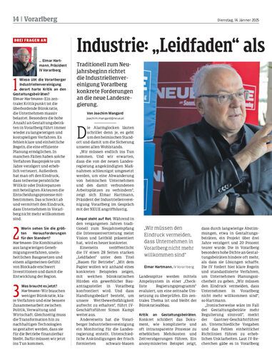 Traditionell zum Neujahrsbeginn richtet die Industriellenvereinigung Vorarlberg konkrete Forderungen an die neue Landesregierung.
