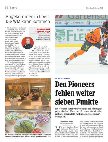 Die Pioneers Vorarlberg verlieren das Heimspiel gegen die Graz 99ers mit 1:2, zudem löst sich der erst neu gegründete Fanklub „Südwestkurva“ wieder auf.