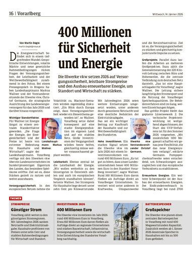 Die Illwerke vkw setzen 2026 auf Versorgungssicherheit, leistbare Strompreise und den Ausbau erneuerbarer Energie, um Standort und Wirtschaft zu stärken.