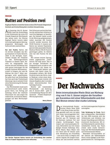 Beim internationalen Rhein Shiai am Nürburgring von 9. bis 11. Jänner zeigten die Vorarlberger Karatekas mit einer Silbermedaille und drei Mal Bronze erneut eine starke Leistung.