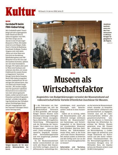 Angesichts von Budgetkürzungen verweist der Museumsbund auf volkswirtschaftliche Vorteile öffentlicher Zuschüsse für Museen.