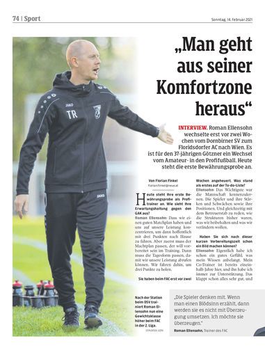 Interview. Roman Ellensohn wechselte erst vor zwei Wochen vom Dornbirner SV zum Floridsdorfer AC nach Wien. Es ist für den 37-jährigen Götzner ein Wechsel vom Amateur- in den Profifußball. Heute steht die erste Bewährungsprobe an.