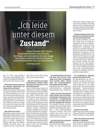 Interview. Franz Fischler über Tiroler Empfindlichkeiten und Sturheit, die Folgen der Coronakrise für das Image des Landes, fehlende Rücktrittskultur und Bundeskanzler Kurz als Getriebenen. Von Wolfgang Fercher