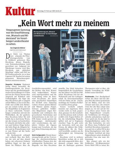 Vergangenen Samstag war die Uraufführung von „Wunsch und Widerstand“ im Vorarlberger Landestheater zu sehen.