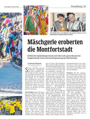 Feldkircher Spältabürger freuen sich über sehr guten Besuch bei Guggenmusik-Event und Faschingsumzug am Wochenende.