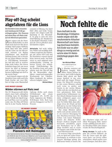 Die Dornbirn Lions mussten sich Salzburg mit 72:81 geschlagen geben . Die Chancen auf einen Play-off-Platz sind auf ein Minimum gesunken.