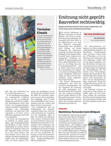 Negativer Baubescheid für Stützmauer aufgehoben, die schon lange auch auf Nachbargrund liegt.