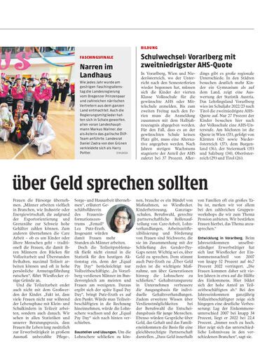 Der heutige „Equal Pay Day“ erinnert daran, dass in Österreich keine Lohngleichheit herrscht. Vorarlberg bildet das Schlusslicht.