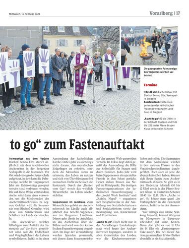 Zahlreiche Veranstaltungen gibt es am Aschermittwoch – vom Benefizsuppenessen bis zur „Asche to go“.