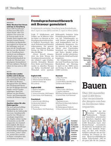 Erstplatzierte vertreten Vorarlberg beim Bundesfinale am 4. April in Linz (BHS) und am 21. April in Wien (AHS).