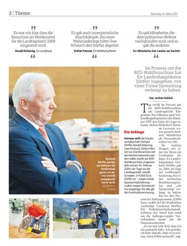 Im Prozess um die BZÖ-Wahlbroschüre hat Ex-Landeshauptmann Dörfler zugegeben, von einer Firma Sponsoring verlangt zu haben.