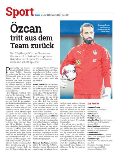 Der 32-jährige Götzner Ramazan Özcan wird in Zukunft aus privaten Gründen nicht mehr für die Nationalmannschaft spielen.