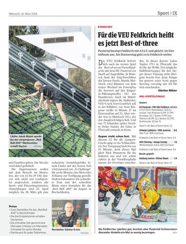Pustertal besiegt Feldkirch mit 4:3 n.V. und gleicht im Viertelfinale aus. Am Donnerstag geht es in Feldkirch weiter.