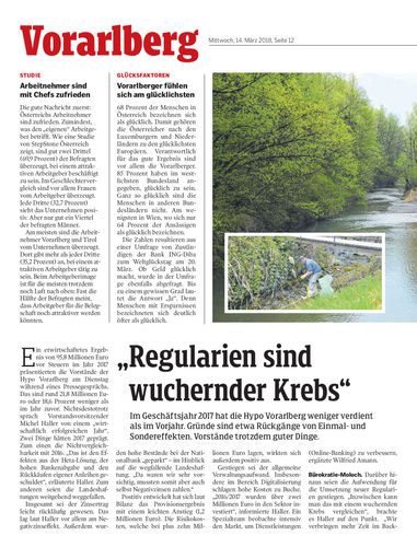 Im Geschäftsjahr 2017 hat die Hypo Vorarlberg weniger verdient als im Vorjahr. Gründe sind etwa Rückgänge von Einmal- und Sondereffekten. Vorstände trotzdem guter Dinge.