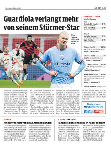 Im Achtelfinal-Rückspiel der Champions League trifft Leipzig heute (21 Uhr) auswärts auf Manchester City. Nach dem 1:1 aus dem Hinspiel ist das Rennen um den Aufstieg völlig offen.