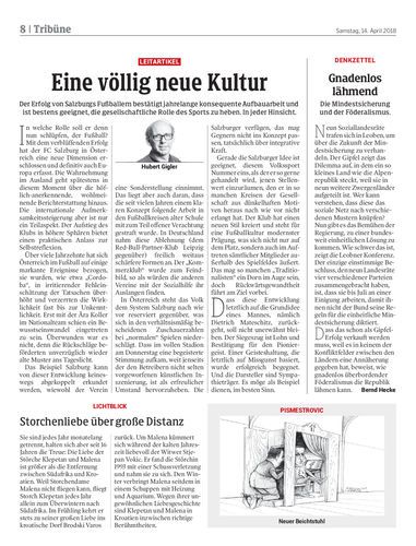 Der Erfolg von Salzburgs Fußballern bestätigt jahrelange konsequente Aufbauarbeit und ist bestens geeignet, die gesellschaftliche Rolle des Sports zu heben. In jeder Hinsicht.