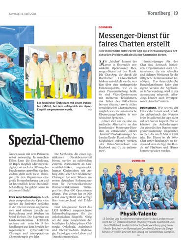 Im Feldkircher Spital ist es nun möglich, eine Chemotherapie während einer Operation durchzuführen.