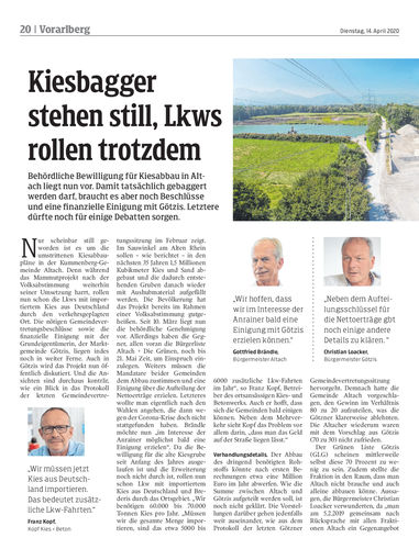 Behördliche Bewilligung für Kiesabbau in Altach liegt nun vor. Damit tatsächlich gebaggert werden darf, braucht es aber noch Beschlüsse und eine finanzielle Einigung mit Götzis. Letztere dürfte noch für einige Debatten sorgen.