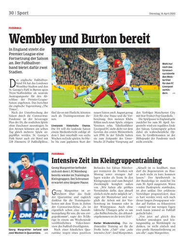 Georg Margreitter befindet sich mit dem 1. FC Nürnberg bereits wieder im Training in Kleingruppen. Der Schrunser erwartet eine längere Pause.