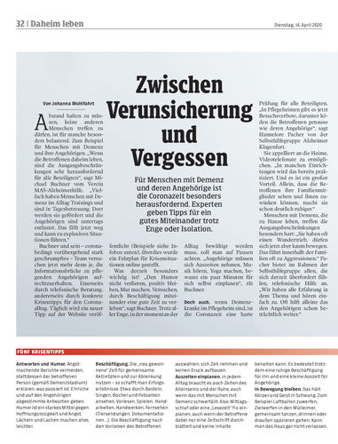 Für Menschen mit Demenz und deren Angehörige ist die Coronazeit besonders herausfordernd. Experten geben Tipps für ein gutes Miteinander trotz Enge oder Isolation.