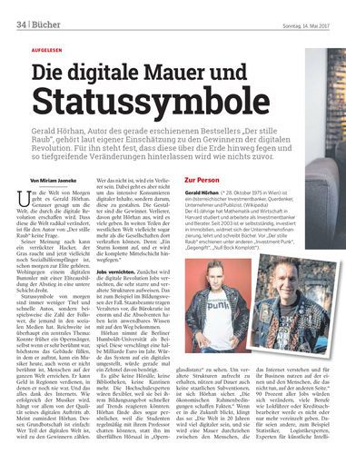 Gerald Hörhan, Autor des gerade erschienenen Bestsellers „Der stille Raub“, gehört laut eigener Einschätzung zu den Gewinnern der digitalen Revolution. Für ihn steht fest, dass diese über die Erde hinweg fegen und so tiefgreifende Veränderungen hinterlassen wird wie nichts zuvor.