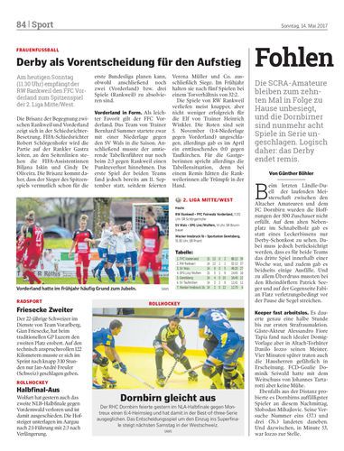 Am heutigen Sonntag (11.30 Uhr) empfängt der RW Rankweil den FFC Vorderland zum Spitzenspiel der 2. Liga Mitte/West.