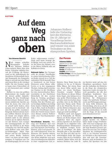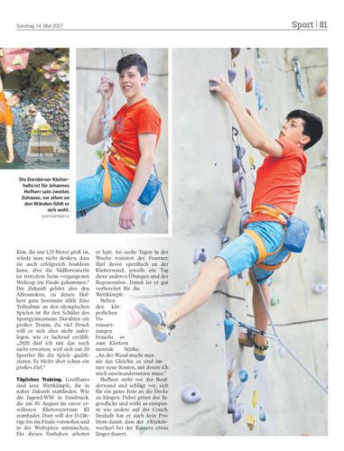 Johannes Hofherr liebt die Vielseitigkeit des Kletterns. Der 15-Jährige ist Vorarlbergs bester Nachwuchskletterer und träumt von einer Teilnahme an den olympischen Spielen.