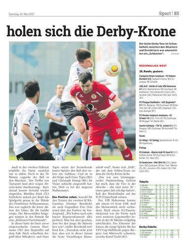 Vorschau. Nach dem Remis gegen die Wiener Violetten vor einer Woche soll gegen die Blackies aus Graz endlich wieder ein Sieg vor eigenem Publikum folgen. Anpfiff ist um 16.30 Uhr.