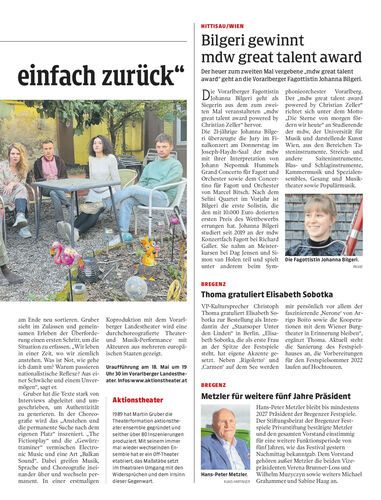 Der heuer zum zweiten Mal vergebene „mdw great talent award“ geht an die Vorarlberger Fagottistin Johanna Bilgeri.
