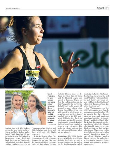 Isabel Posch (23) freut sich auf das Hypomeeting Ende Mai in Götzis. Von einem „Duell“ mit Chiara Schuler will die Fußacherin, die in der Schweiz mit Shootingstar Simon Ehammer trainiert, nichts wissen.