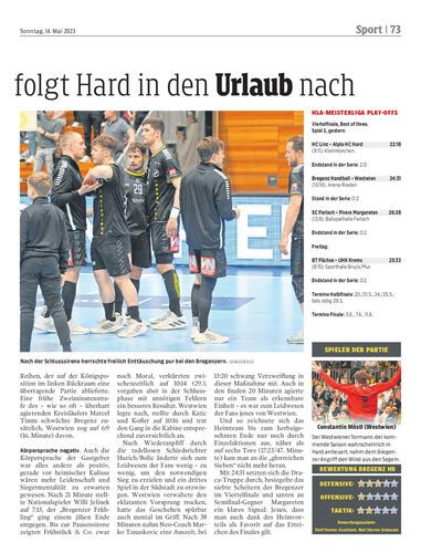 Rekordmeister muss auch Spiel zwei im HLA-Viertelfinale an Westwien abgeben. Mit 31:24 setzen sich die Gäste durch und ziehen souverän ins Semifinale gegen Margareten ein.