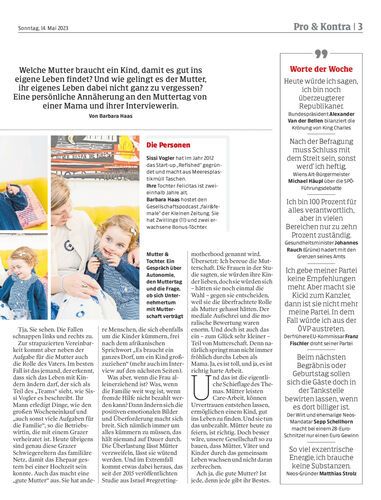 Welche Mutter braucht ein Kind, damit es gut ins eigene Leben findet? Und wie gelingt es der Mutter, ihr eigenes Leben dabei nicht ganz zu vergessen? Eine persönliche Annäherung an den Muttertag von einer Mama und ihrer Interviewerin. Von Barbara Haas