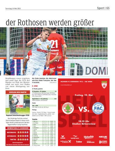 Wie schon zuletzt in Kapfenberg geht der FC Dornbirn nach einer 1:0-Führung auch gegen Admira Wacker leer aus. Endstand vor knapp 600 Zuschauern auf der Birkenwiese 1:2.