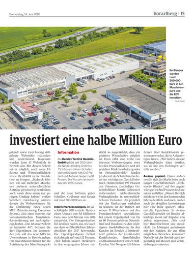 Mit neuer Wirkmaschine und zwei weiteren Webstühlen sollen Wirtschaftlichkeit und Flexibilität gesteigert werden.