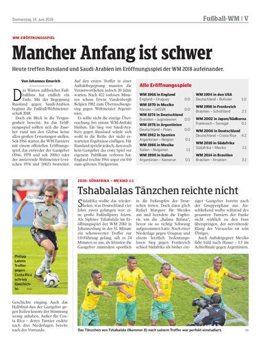 Heute treffen Russland und Saudi-Arabien im Eröffnungsspiel der WM 2018 aufeinander.