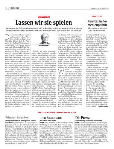 Heute wird die Fußball-Weltmeisterschaft in Russland eröffnet. Boykottaufrufe mögen dem schlechten Gewissen dienen. Dem Volk dienen sie nicht. Es hat ein Recht auf den Kick.