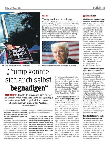 Donald Trump muss sich derzeit vor Gericht wegen des Verdachts auf Spionage verantworten. Politologe Reinhard Heinisch über die Auswirkungen der Anklage. Von Tobias Kurakin