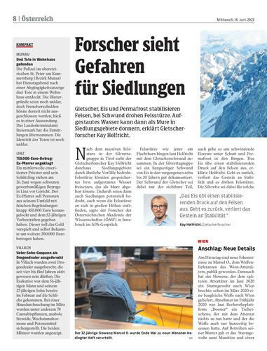 Gletscher, Eis und Permafrost stabilisieren Felsen, bei Schwund drohen Felsstürze. Aufgestautes Wasser kann dann als Mure in Siedlungsgebiete donnern, erklärt Gletscherforscher Kay Helfricht.