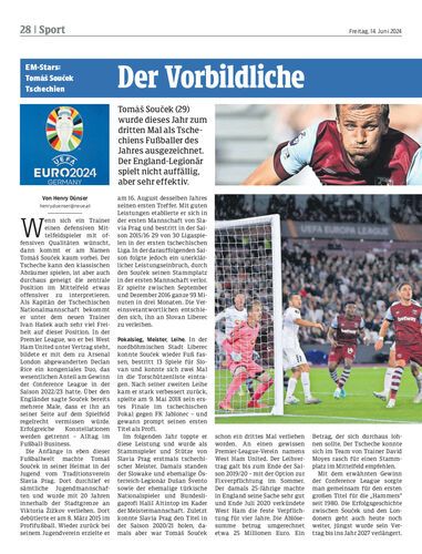 Tomáš Souček (29) wurde dieses Jahr zum dritten Mal als Tschechiens Fußballer des Jahres ausgezeichnet. Der England-Legionär spielt nicht auffällig, aber sehr effektiv.