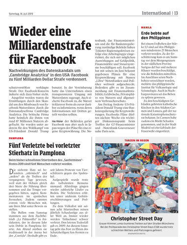 Nachwirkungen des Datenskandals um „Cambridge Analytica“ in den USA: Facebook zu fünf Milliarden Dollar Strafe verdonnert.