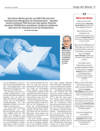 Seit dieser Woche gilt die von SPÖ, FPÖ und Jetzt beschlossene Obergrenze für Parteispenden – Spender dürfen maximal 7500 Euro pro Jahr geben, Parteien maximal 750.000 Euro annehmen. Fachleute plädieren aber eher für Transparenz als für Obergrenzen. Von Hubert Sickinger