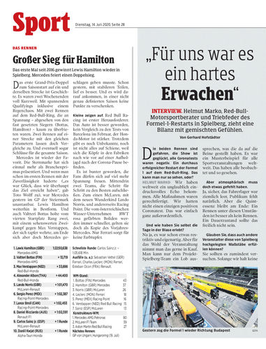 Helmut Marko, Red-Bull- Motorsportberater und Triebfeder des Formel-1-Restarts in Spielberg, zieht eine Bilanz mit gemischten Gefühlen. Von Gerhard Hofstädter