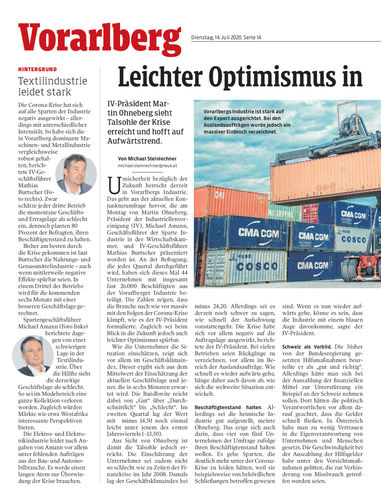 Vorarlberg. Die Geschäftslage in der Industrie ist derzeit düster. In der Konjunkturumfrage von IV und Wirtschaftskammer zeigen sich die Unternehmer in Zukunftsfragen aber leicht optimistisch. Seiten 14/15 Shutterstock