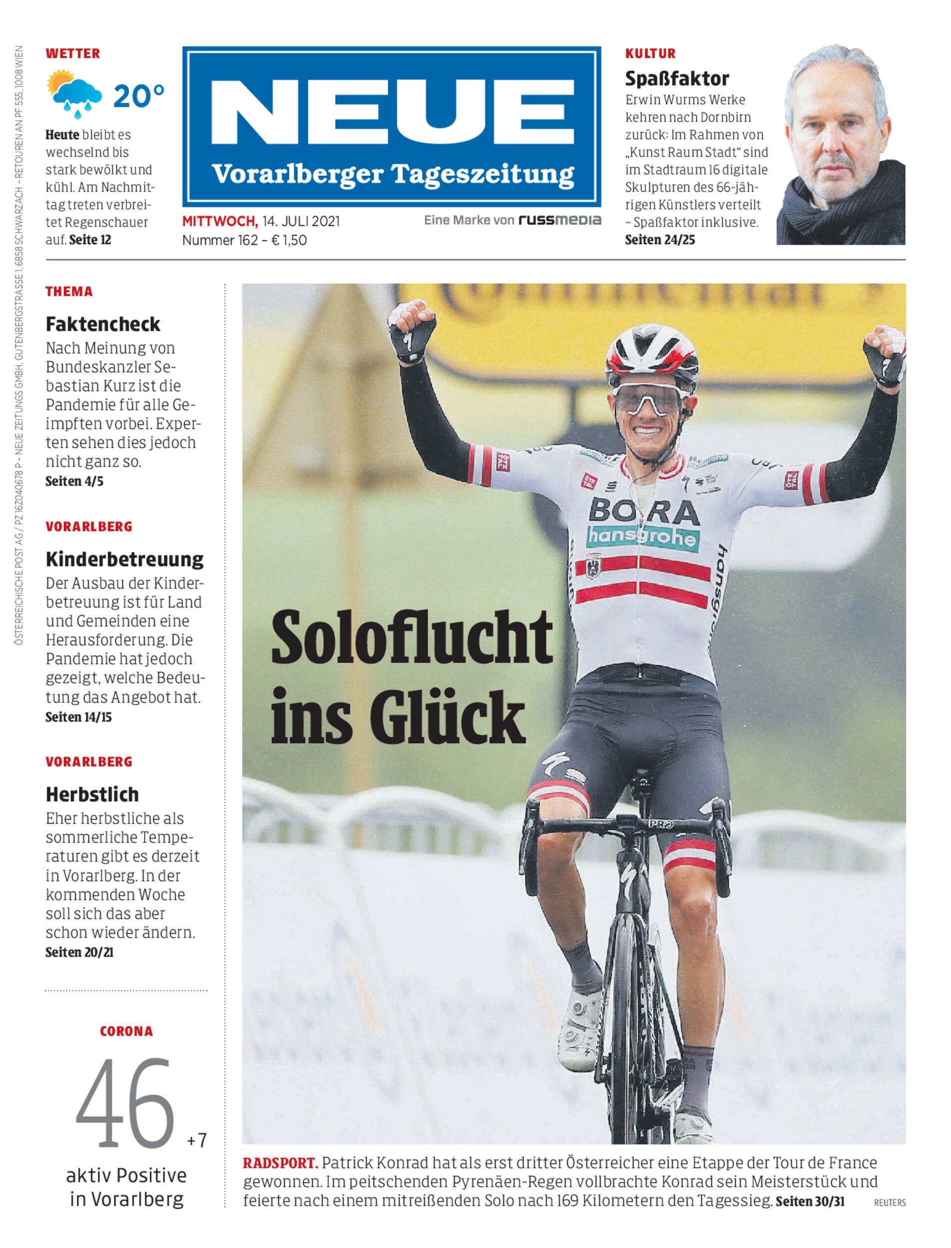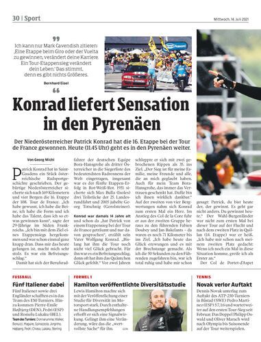 Der Niederösterreicher Patrick Konrad hat die 16. Etappe bei der Tour de France gewonnen. Heute (11.45 Uhr) geht es in den Pyrenäen weiter.